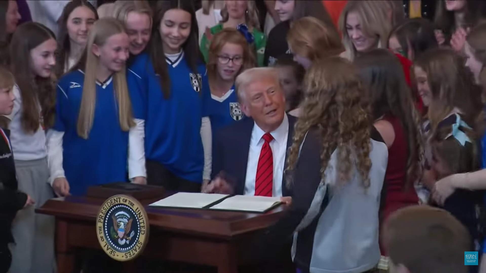 ▲川普5日晚間正式簽署行政命令,禁止跨性別運動員參加女性體育賽事。(圖/翻攝自「CBN News」YT)