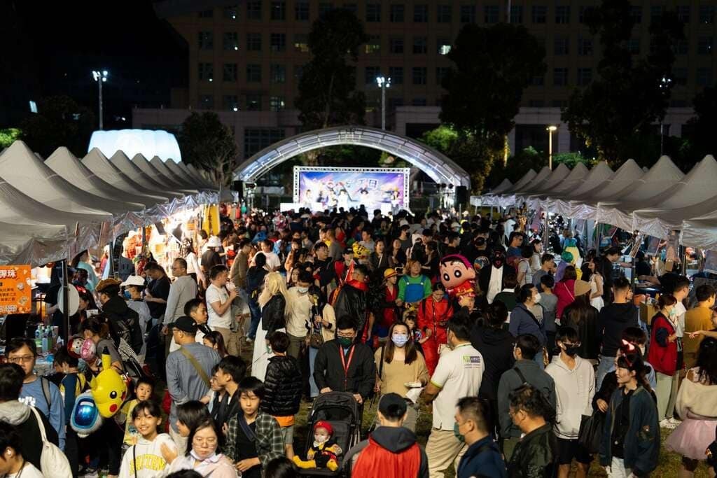 市集旁的「BRICK PAPA樂高積木車」區吸引無數孩子聚集,工作人員笑說:「每年孩子都能在這裡蓋出屬於自己的鬼屋。」此外,「乖乖好朋友健康操」舞台、可口可樂拍照區與「味全龍遊戲區」則成為親子放電首選。