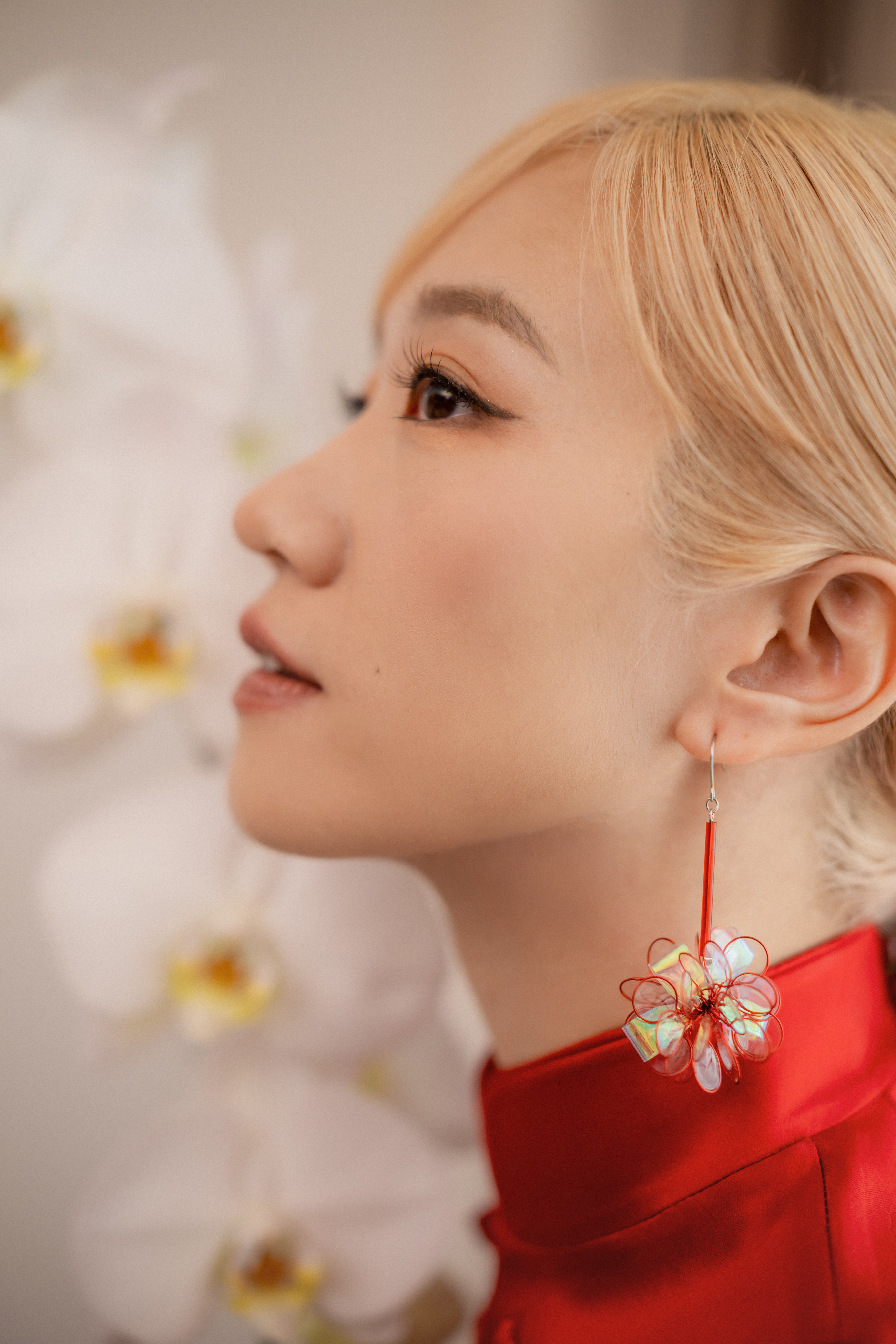 ▲ Lulu 著一襲 夏姿紅中式立領削肩背心,禮服以「鳳」為題。(圖/天地合娛樂 X 民間友人有限公司提供)