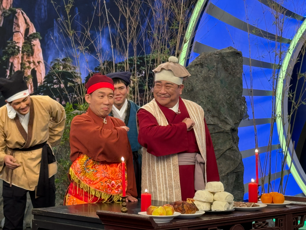 ▲ 模仿天王郭子乾(左)與白雲(右)飾演兩位神棍在村裡招搖撞騙。(圖:華視)