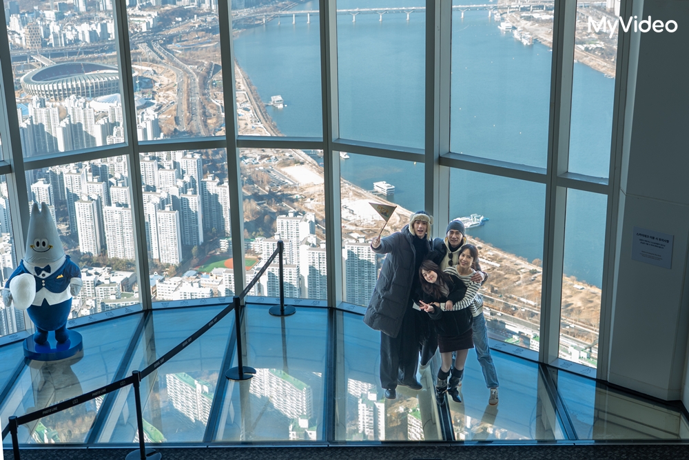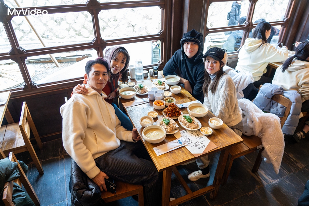 ▲ 韓國媳婦天心(右起)地盤首爾,偕熟面孔温昇豪、邱偲琹與金雲趴趴走。(圖:台灣大哥大MyVideo)