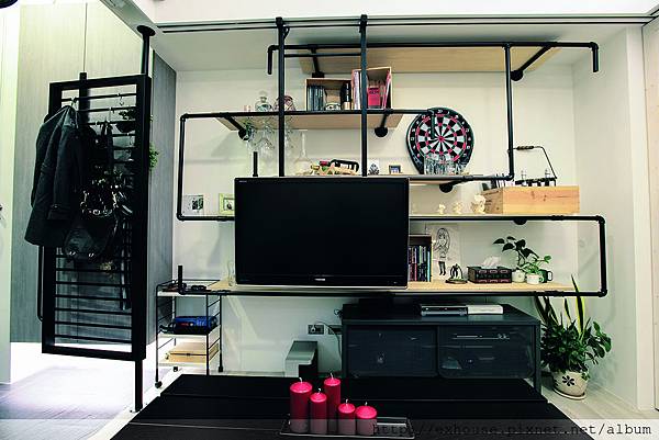 $ 鐵管造型主牆,NT.16,000元/組,日和室內裝修設計:02-2598-6991。