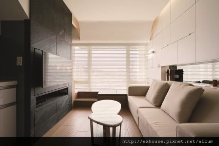 思考1. 細膩線條隱藏超強收納力沙發背牆以門板線條勾勒出純白的摩登視覺,恰與黑色電視石牆形成對話,同時也讓小空間的收納問題獲得適度緩減,而牆面上壁龕式展示台搭配鏡面設計,除讓畫面聚焦外,也能延伸視覺。