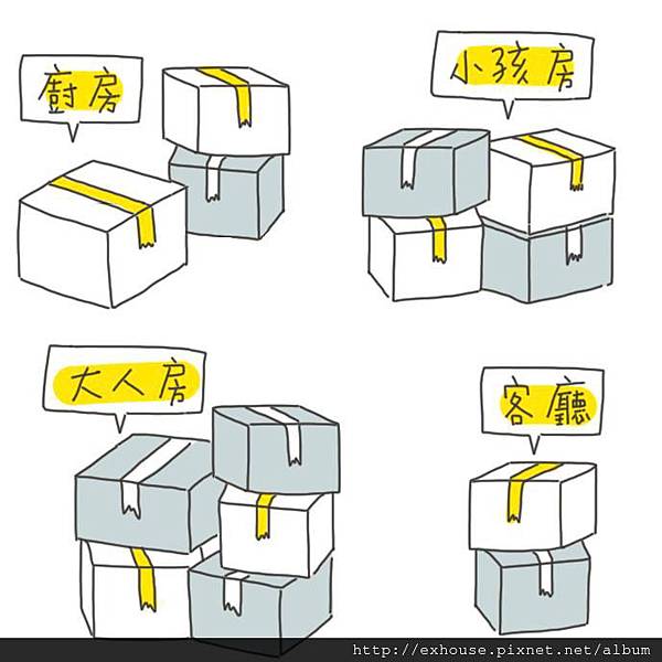 ** 2 依照各房間和區域將箱子編號分類。