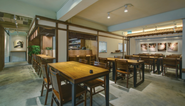 咖啡廳或是餐廳老屋空間中的桌椅,通常單品數量多,除了直接跟傢具公司購買之外,也可以請設計師加以製作,不僅節省成本,同時也能創造出空間新意。以引進日式手打烏龍麵的「穗科」為例,外觀雖然是水泥結構公寓