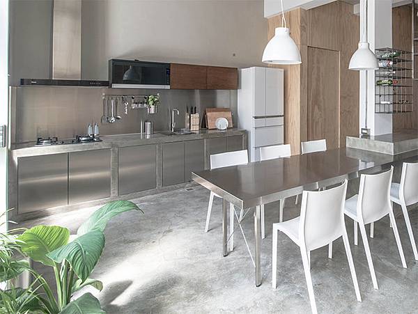 為了提供便於互動 交流的環境,特別將餐廚區移至格局的前端,