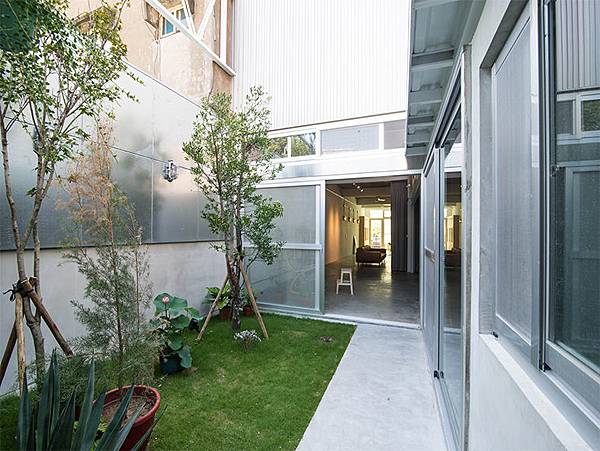 設計者適度地去除了一部分的鐵皮屋空間,一部分用來創造出室外庭院區域,
